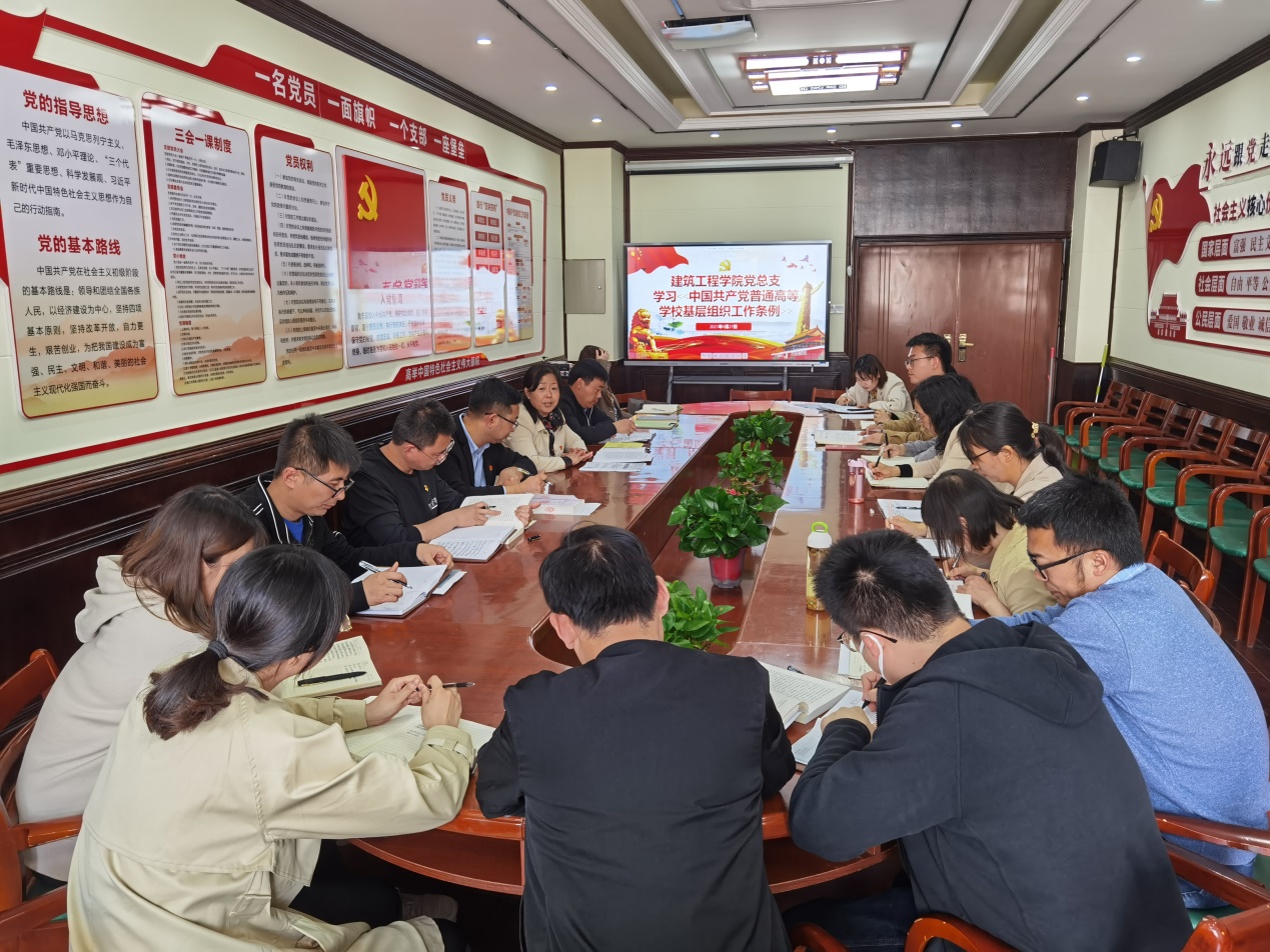 建筑工程学院党总支会把学习宣传贯彻《中国共产党普通高等学校基层组织工作条例》作为一项重要政治任务,通过主题党日活动等形式组织师生深入领会该条例精神,严格遵守和执行该条例规定,牢记立德树人的初心、为党育人为国育才的使命,为培养德智体美劳全面发展的社会主义合格建设者和可靠接班人做出新的更大贡献。
