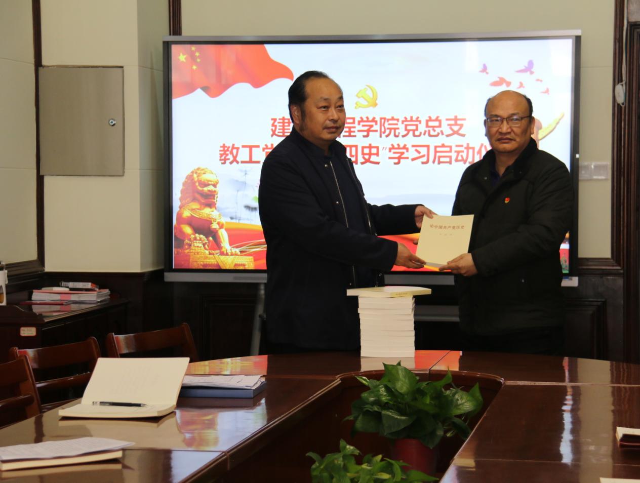 为深入学好党史,回顾我们党团结带领中国人民不懈奋斗的光辉历程,学习党在各个历史时期创造的理论成果,教工党支部举行了“授书”仪式,党委委员薄新党同志为每位党员发放书籍《论中国共产党历史》,并向党员同志强调要时刻牢记党员身上担负的责任和使命,通过各种方式全面系统学习、深入思考学习、联系实际学习,切实增强“四个意识”、坚定“四个自信”、做到“两个维护”。