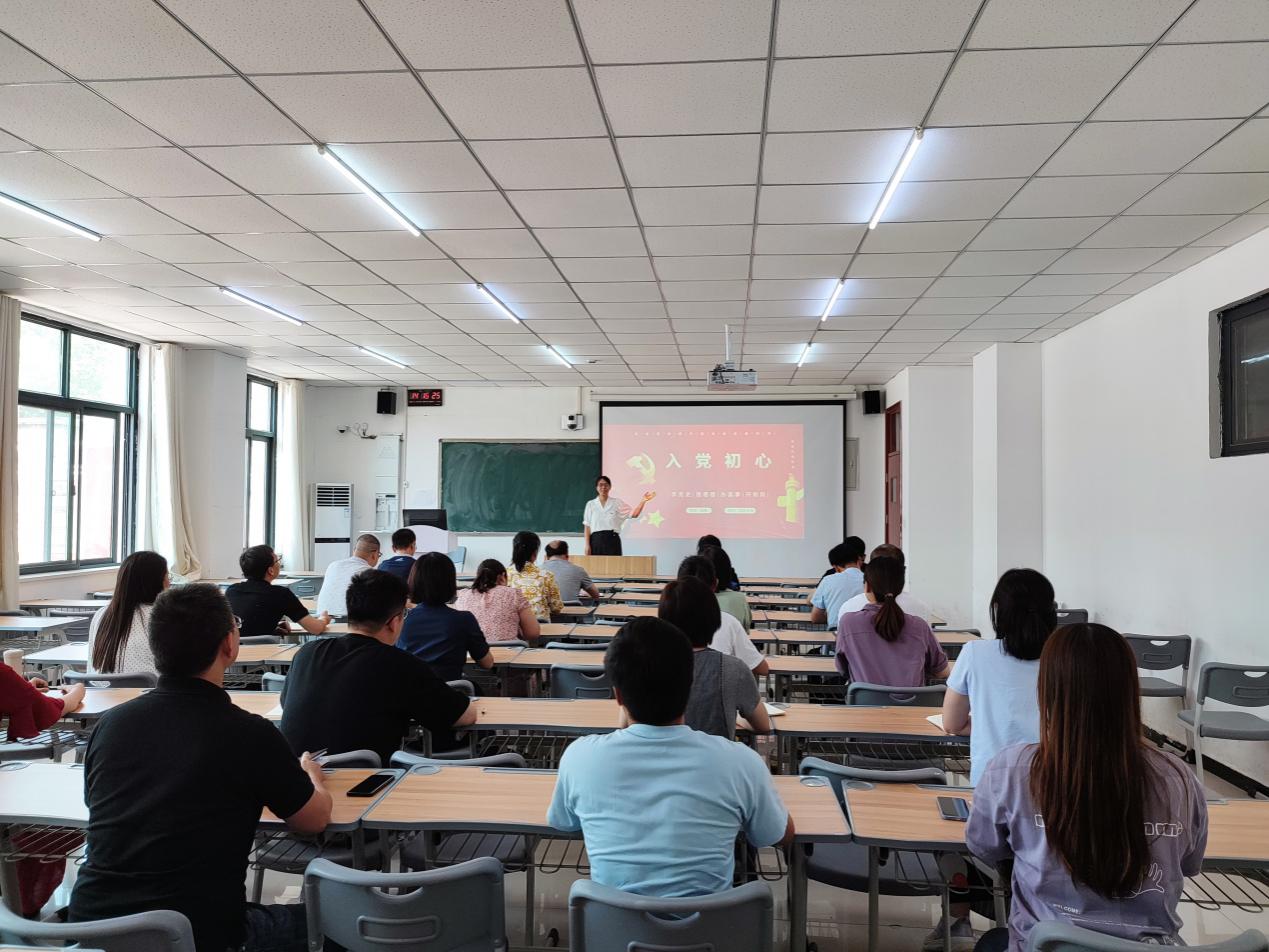 本次党课,樊磊老师以《延安精神》为题,围绕正确理解延安精神的实质和深刻内涵进行阐述,对如何践行“不忘初心、牢记使命”,严肃政治纪律,强化政治规矩进行讲解。延安精神是红色革命精神之一,是中国共产党创造的一种革命精神。因在革命圣地延安诞生,故名延安精神,主要内容包括:实事求是、理论联系实际的精神,全心全意为人民服务的精神和自力更生艰苦奋斗的精神。张瑾老师以《入党初心》为题,结合自己的工作实际,对共产党员如何立足岗位讲奉献进行了讲解。