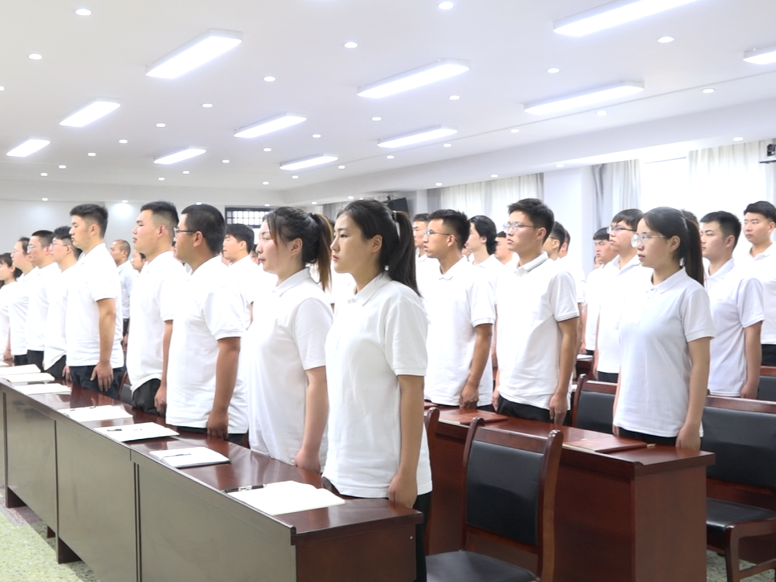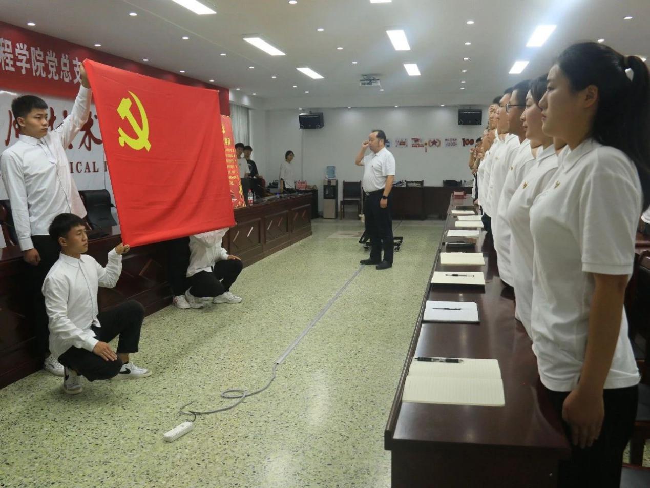 会议进行第三项,在校党委委员薄新党的领誓下,全体党员在党旗下举起右拳,对党深情告白和郑重承诺,这是入党程序中最为庄严和神圣的时刻,既标志着政治生活新征程的开启,也预示着责任使命的重担在肩。
