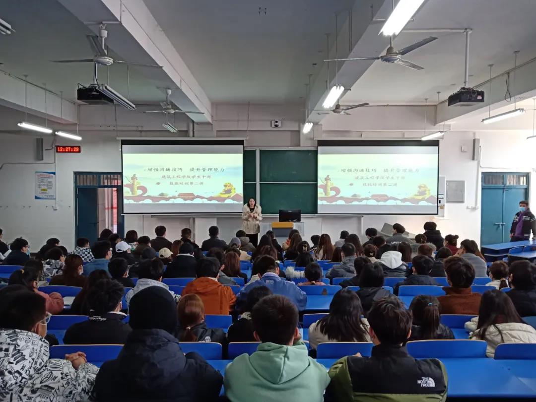 为进一步增强学生干部自我教育、自我管理、自我服务意识,提高他们的综合素质,提升学生干部的工作能力和服务水平,切实做到我为学生办实事。2021年11月22日,建筑工程学院在B102举办学生干部专题培训,培训由刘亚娟老师主讲,学生会成员以及2020级、2021级班委参加这次培训。