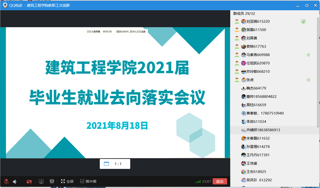 为切实做好2021届毕业生毕业去向落实工作,2021年8月18日,建筑工程学院组织召开2021届毕业生毕业去向落实工作专题会议,会议由建筑工程学院党总支书记马春燕主持。