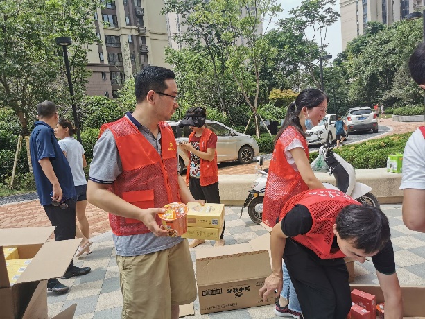险情就是命令,防汛就是责任。做好防汛救灾工作是当前的一项重大政治任务。7月24日上午9时,当建筑工程学院党总支书记马春燕得知秋雅社区分发救灾物资缺人手的时候,她再次召集7名党员教师和5名学生党员走进社区支援。大家负责分装发放9、10、11、12四栋楼物资,遇到行动不便的老人或者带孩子的妇女时,大家帮忙运送上楼。