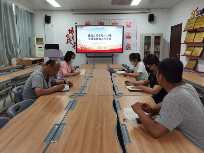 2022年7月21日,建筑工程学院在办公楼516组织召开2022届毕业生就业工作会议,旨在为贯彻落实学校就业工作推进会会议精神,打好2022届毕业生就业工作的攻坚战。建筑工程学院党总支书记马春燕、院长张虎、副书记刘亚娟、2019级全体辅导员参加了会议。会议采取线上线下相结合的方式进行,会议由马春燕主持。