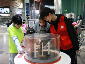 郑州科技馆:小筑志愿者们帮工作人员检票,维持展厅秩序,为前来的观众介绍展品,指导仪器操作。志愿者与小朋友互动交流,为他们讲解科学原理和科学知识,让小朋友们近距离的感受科学的魅力,培养热爱科学,崇尚科学的兴趣。