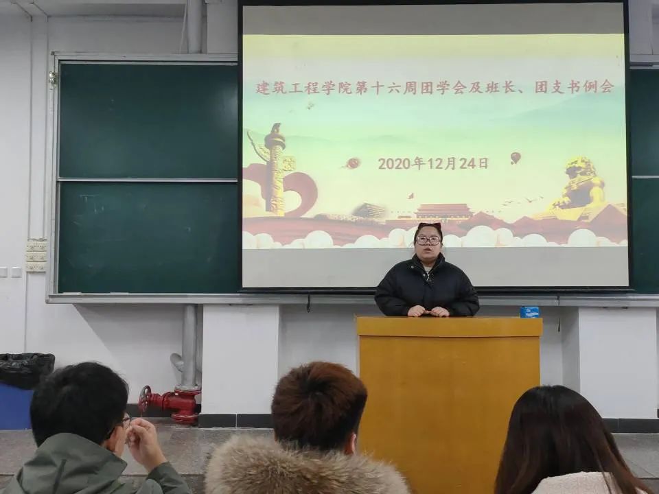 为了提高全体学生干部的工作积极性,提高工作效率和学习效率,解决在工作中的难题。建筑工程学院西校区于2020年12月24日中午12:20在B楼102教室开展了建筑工程学院西校区第十六周学生干部例会。参与本次会议的有马春燕书记、刘高喜主任、宋春磊老师、李慧杰老师、孙雪理老师、全体团学会成员及各班班长、团支书。
