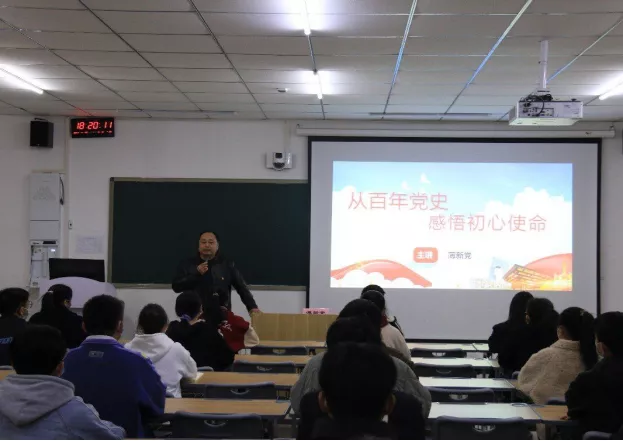为全面贯彻党的教育方针,落实立德树人根本任务,深入学习贯彻习近平总书记在庆祝中国共产党成立100周年大会上的重要讲话精神,推动党史学习教育往深里走、往心里走、往实里走,深入一线了解学生的思想动态。2021年11月22日,我校副校长薄新党以“从百年党史,感受初心使命”为主题为学生讲授“思政第一课”,引导广大青年学生不负时代、不负韶华。